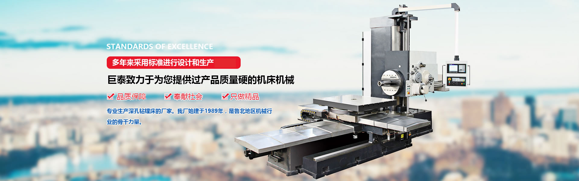 德州市巨泰機床制造有限公司位于具有“九達天衢”、“神京之門”之稱的山東省德州市,是專業生產深孔鉆鏜床的廠家。我廠始建于1989年,擁有固定資產1800萬元,員工120人,其中高級工程師8人,專業技術人員26人,是魯北地區機械行業的骨干力量。 本廠擁有大型機械加工設備4000mm、6000mm、9000mm龍門刨床、1140×8000mm車床、數控鏜床、大型數顯斷面銑、大型滾齒輪、機械加工中心等各類型磨床、車床、鉆床、銑床,八十余臺。 主導產品有:普通類——深孔鉆鏜床(T2116、T2120)、深孔鏜床(T2225、T2235、T2250)、深孔珩磨機(2M2125A、2M2135A)等;數控類——數控深孔鉆鏜床(TK2120、TK2125)、數控深孔鏜床(TK2235、TK2250)。深孔槍鉆(ZK2102、ZK2103)等。深孔加工刀具、輔具有:標準系列——深孔鉆頭、深孔鏜頭 、滾壓頭 、鏜滾組合頭及深孔珩磨頭等 ,并承接非標深孔刀具 、特型孔加工刀具的設計制造業務 ,根據生產需要有單體刀具和復合刀具,產品規格從Φ30mm到Φ1000mm......